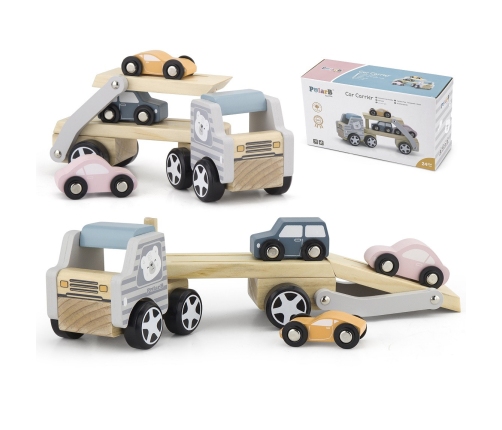 Nasza zabawka wykonana jest z wysokiej jakości drewna, co gwarantuje odporność na uszkodzenia. Zarówno samochody, jak i ciężarówka i laweta są pokryte pięknymi, nietoksycznymi farbami, co sprawia, że jest całkowicie bezpieczna dla dziecka.