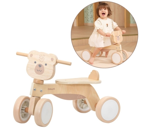 Drewniany jeździk trójkołowy z misiem brunatnym – bezpieczna i aktywna zabawa!