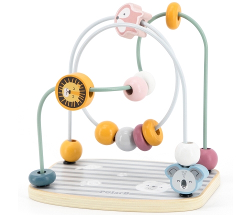 Drewniane pętle motoryczne to świetna zabawka sensoryczna, która pozwala dziecku trenować sprawność rączek. Przeplatając koraliki przez zakrzywione rurki, dziecko musi wykonywać odpowiednie ruchy, aby działania odniosły sukces. Tym sposobem dziecko uczy się jakie ruchy należy wykonywać i jak poprawnie kontrolować własne ciało, by wykonywało takie czynności, jakie mamy na celu. Zabawka składa się z drewnianej podstawy, na której ustawione są 4 rurki. Na rurkach nawleczone są kolorowe koraliki i kilka klocków z podobiznami zwierzątek, które na pewno przyciągną uwagę pociech.