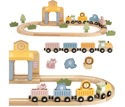 PolarB Drewniany Zestaw Kolejowy 30 el. to doskonała propozycja dla małych miłośników pociągów! Zawiera 30 elementów, w tym różnorodne tory, interaktywną stację oraz akcesoria, które pozwalają na tworzenie własnych scenariuszy zabawy. Dodatkowo dołączona książeczka z przewodnikiem ułatwia budowanie realistycznej scenerii stacji kolejowej. Dzięki funkcji dźwiękowej, uruchamianej magnetycznie podczas przejazdu pociągu przez stację, zabawa staje się jeszcze bardziej angażująca. Drewniane elementy są solidne i trwałe, a ich uniwersalność zachęca dzieci do swobodnej i kreatywnej zabawy.