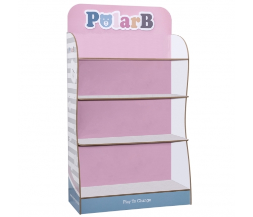Regał wystawowy z półkami serii PolarB jest idealny do każdego pokoju dziecięcego. Regał wykonany jest z wysokiej jakości drewna pomalowanego nietoksycznymi farbami z ogromną dbałością o każdy szczegół. Regał posada 3 półki, na których można postawić ozdoby, zabawki czy kwiatki. Produkt wykonany jest z myślą o najmłodszych dlatego krawędzie regału są zaokrąglone. Całość pomalowana jest w łagodnych farbach, które na pewno dopasują się do niejednego pomieszczenia.