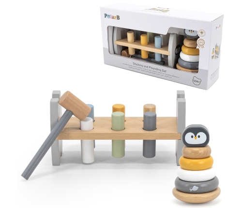 W tym zestawie z serii PolarB od marki Viga znajdziemy dwie pastelowe, drewniane zabawki: piramidkę edukacyjną oraz przebijak z młoteczkiem. Obie zabawki nie tylko wypełnią czas dziecka świetną zabawą, ale przyczynią się do rozwoju zdolności motorycznych, logicznego myślenia oraz nauki kolorów. Dzięki spędzaniu czasu z tymi zabawkami dziecko nabędzie precyzję ruchów rączek, która w przyszłości ułatwi naukę pisania.