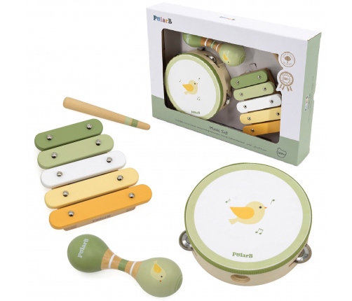 Starannie zaprojektowany z myślą o harmonijnym rozwoju muzycznym dzieci już od 12 miesiąca życia. Zestaw zawiera 3 pięknie wykonane instrumenty w pastelowych barwach z motywem sympatycznego ptaszka zachęcające dzieci do pierwszych muzycznych eksperymentów, rozwijając ich słuch, poczucie rytmu i koordynację ruchową.