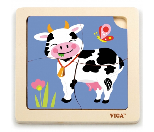 - - 4 elementy puzzli z krówką,