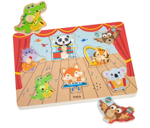 VIGA Puzzle Dźwiękowe Dopasuj Muzykujące Zwierzęta to wspaniała układanka, która wprowadza dziecko w świat muzyki i dźwięków instrumentów. Ta edukacyjna zabawka rozwija zdolności manualne i poznawcze, zachęcając do interaktywnej zabawy. Po podniesieniu i ponownym dopasowaniu elementu dziecko usłyszy realistyczny dźwięk instrumentu, co wzmacnia naukę poprzez doświadczenie.