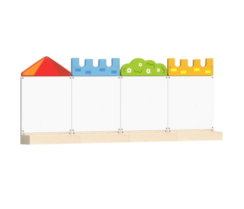 W skład zestawu Tablic Magnetycznych Ściennych VIGA Zamek wchodzą drewniane plansze z wieżami i koroną drzewa, oraz cztery tablice magnetyczne. Ten magiczny zestaw pobudzi wyobraźnię każdego dziecka, zapewniając radość oraz wyjątkowy rozwój umiejętności. Dzięki niemu maluchy będą miały niezliczone możliwości twórczego wyrażania siebie, rozwijania wyobraźni i zdobywania nowej wiedzy.