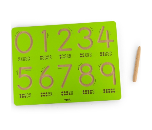 Tablica kreślarska od marki VIGA to idealna propozycja dla dzieci do trenowania rączki przed nauką pisania. Delikatnie wygrawerowane i zakrzywione rowki sprawiają, że idealnie nadaje się dla dzieci do kontrolowania ruchu dłoni i kształtowania pamięci mięśniowej poprzez wielokrotne śledzenie. Każda cyfra jest oznaczona strzałkami, co pomaga dzieciom w prawidłowej kolejności pisania. Tablica jest dostępna w kompaktowych rozmiarach, dzięki czemu dzieci mogą ją trzymać i używać na stole lub biurku.Dziecko poprzez zabawę uczy się ruchów odpowiedzialnych w przyszłości za rysowanie i pisanie, kształci płynność ruchów oraz ćwiczy koordynację wzrokowo - ruchową.