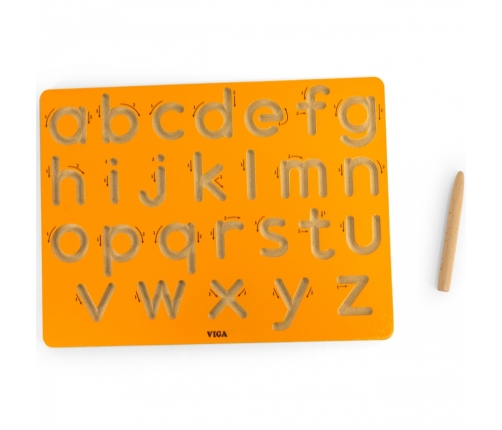 Tablica kreślarska od marki VIGA to idealna propozycja dla dzieci do trenowania rączki przed nauką pisania. Delikatnie wygrawerowane i zakrzywione rowki sprawiają, że idealnie nadaje się dla dzieci do kontrolowania ruchu dłoni i kształtowania pamięci mięśniowej poprzez wielokrotne śledzenie. Każda litera jest oznaczona strzałkami, co pomaga dzieciom w prawidłowej kolejności pisania. Tablica jest dostępna w kompaktowych rozmiarach, dzięki czemu dzieci mogą ją trzymać i używać na stole lub biurku.Dziecko poprzez zabawę uczy się ruchów odpowiedzialnych w przyszłości za rysowanie i pisanie, kształci płynność ruchów oraz ćwiczy koordynację wzrokowo - ruchową.