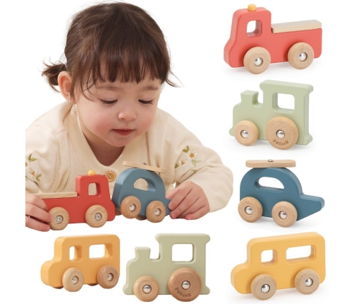 Odkryj urok klasycznych samochodów drewnianych od marki Viga z serii PolarB! Ten wyjątkowy zestaw czterech pojazdów został zaprojektowany z myślą o najmłodszych – rozwija wyobraźnię, motorykę i uczy rozpoznawania środków transportu. Każdy pojazd jest wykonany z naturalnego, gładko oszlifowanego drewna, przyjemnego w dotyku i w pełni bezpiecznego dla dzieci. Dzięki pastelowym kolorom i prostym kształtom, zestaw idealnie wpisuje się w estetykę nowoczesnych pokoi dziecięcych. To doskonały pomysł na prezent, który łączy zabawę z edukacją!