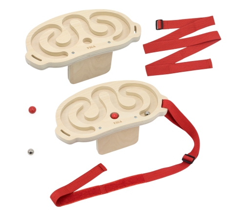 VIGA Zestaw labiryntów do balansowania ciałem to innowacyjna gra ruchowa, która angażuje całe ciało, rozwijając koordynację i równowagę. Dzięki dwóm drewnianym labiryntom i kulkom o różnej masie, zabawa staje się ekscytującym wyzwaniem dla dzieci. Gracze zakładają pas z labiryntem na talię, klatkę piersiową, nogi lub ramiona, a następnie poruszają ciałem, aby wprawić kulkę w ruch i przeprowadzić ją przez labirynt. Zabawki można używać samodzielnie lub rywalizować w parach, co dodaje zabawie dynamiki i integruje uczestników.