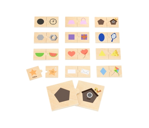 Zestaw puzzli "Dopasuj Cienie" od marki VIGA to idealne połączenie zabawy z edukacją. Te logiczne puzzle to klasyczne układanki, które zachwycą każde dziecko. Dzięki pięknym, barwnym elementom zapewniają nie tylko wciągającą zabawę, ale również wspierają wczesną edukację poprzez zabawę. Kolorowe postacie na puzzlach przyciągną uwagę dzieci, pomagając im w nauce kolorów oraz poznawaniu otaczającego świata, a także w rozwijaniu nowych słów, wierszyków i piosenek. Ta drewniana układanka pomaga dzieciom w nauce rozpoznawania i rozróżniania cieni przedmiotów codziennego użytku.