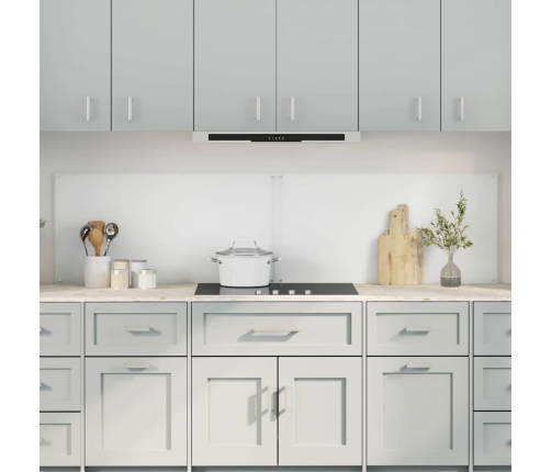 Šis rūdītā stikla virtuves backsplash ir stilīgs un aizsargājošs elements mūsdienīgām virtuvēm. Izgatavots ar tīrām līnijām, tas piedāvā praktisku karstumizturību, kas ir ideāla dažādām ēdiena gatavošanas situācijām.