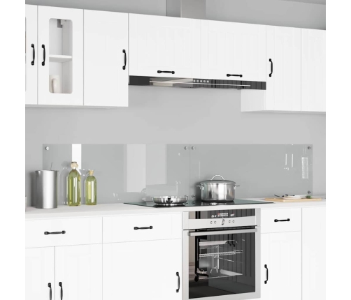 - Rūdīta stikla konstrukcija: Šis backsplash ir izgatavots no augstas kvalitātes rūdīta stikla, kas ir ļoti izturīgs. Stikla materiāls piešķir visam modernu izskatu, radot gludu un elegantu efektu, kas iederas jebkurā virtuvē. Tās dzidrs apdare piešķir izsmalcinātību, padarot to par ideālu risinājumu dažādiem dizaina stiliem.
