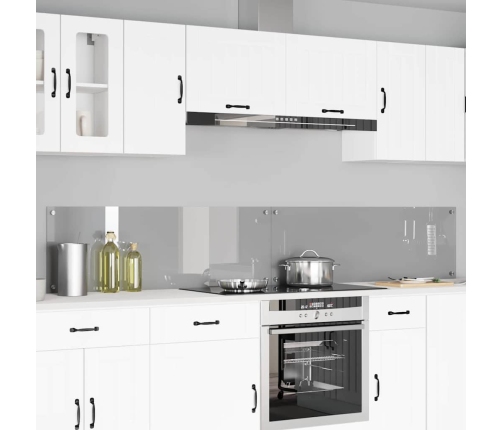 - Rūdīta stikla konstrukcija: Šis backsplash ir izgatavots no augstas kvalitātes rūdīta stikla, kas ir ļoti izturīgs. Stikla materiāls piešķir visam modernu izskatu, radot gludu un elegantu efektu, kas iederas jebkurā virtuvē. Tās dzidrs apdare piešķir izsmalcinātību, padarot to par ideālu risinājumu dažādiem dizaina stiliem.