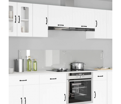 - Rūdīta stikla konstrukcija: Šis backsplash ir izgatavots no augstas kvalitātes rūdīta stikla, kas ir ļoti izturīgs. Stikla materiāls piešķir visam modernu izskatu, radot gludu un elegantu efektu, kas iederas jebkurā virtuvē. Tās dzidrs apdare piešķir izsmalcinātību, padarot to par ideālu risinājumu dažādiem dizaina stiliem.