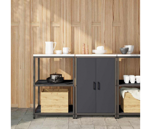 - Praktisks dizains: Skapim ir pulverkrāsotas eņģu durvis ar ērtiem D-veida rokturīšiem. Durvis atveras gludi un aizveras cieši, kas ļauj viegli piekļūt lietām. Pulverkrāsotā apdare piešķir stilīgu izskatu, padarot to par lielisku papildinājumu jebkurai virtuvei.