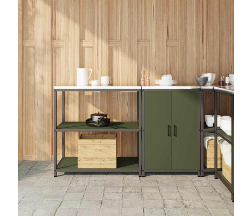 - Praktisks dizains: Skapim ir pulverkrāsotas eņģu durvis ar ērtiem D-veida rokturīšiem. Durvis atveras gludi un aizveras cieši, kas ļauj viegli piekļūt lietām. Pulverkrāsotā apdare piešķir stilīgu izskatu, padarot to par lielisku papildinājumu jebkurai virtuvei.