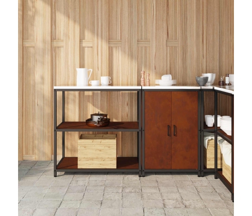 - Praktisks dizains: Skapim ir pulverkrāsotas eņģu durvis ar ērtiem D-veida rokturīšiem. Durvis atveras gludi un aizveras cieši, kas ļauj viegli piekļūt lietām. Pulverkrāsotā apdare piešķir stilīgu izskatu, padarot to par lielisku papildinājumu jebkurai virtuvei.