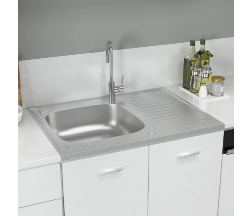 Izlietne ir izgatavota no nerūsējošā tērauda, tādēļ tā ir siltumizturīga, noturīga pret skrāpējumiem un triecieniem un viegli tīrāma. Šī izlietne ar īpaši biezajām malām ir jāuzliek uz skapīša virsmas. Izlietnes sānā esošā žāvēšanas vieta nodrošinās papildu vietu trauku salikšanai. Tai ir arī notekas caurule, kuru var uzstādīt zem kāda no diviem krāna caurumiem. Tā kā izlietnes virziens ir maināms uz abām pusēm, jūs to varēsiet novietot gan labajā, gan kreisajā pusē.