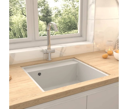 Izlietne ir izgatavota no granīta, tādēļ tā ir siltumizturīga, noturīga pret skrāpējumiem un triecieniem un viegli tīrāma. Sūtījumā ir iekļauts arī izlietnes sietiņš, lai jūs varētu viegli iztīrīt gružus. Drenāžas cauruma diametrs ir 90 mm.