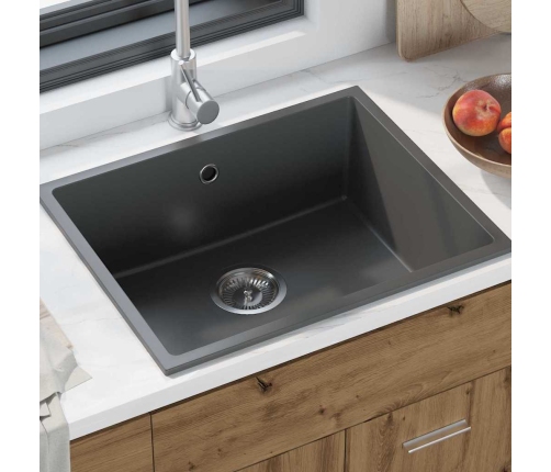 Šī virtuves izlietne ir lielisks praktisko un stilīgo elementu apvienojums, kas izgatavota tieši mūsdienīgām virtuvēm. Taisnstūra forma un matēts pelēks granīts ne tikai izceļas, bet arī ir spēcīga izvēle visām tavām pārtikas sagatavošanas vajadzībām.