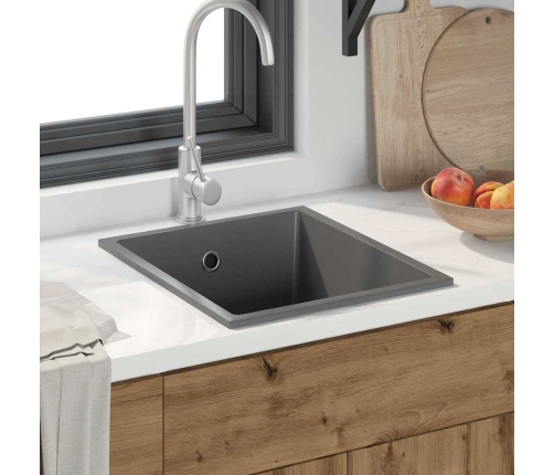 Šī virtuves izlietne apvieno funkciju un stilu, radīta mūsdienīgām virtuvēm. Taisnstūra forma un stilīgā matētā pelēkā granīta apdare padara to pievilcīgu un izturīgu pārtikas sagatavošanai.