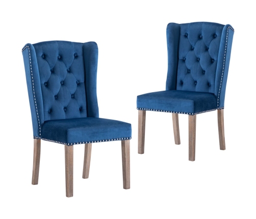 Virtuves krēsli ir apšūti ar mīkstu samta audumu, tādēļ tajos jūs varēsiet ērti pusdienot, lasīt grāmatu vai vienkārši atpūsties. Dekoratīvi iešūtās pogas uz atzveltnes un gar malām esošās metāla kniedes papildina tā klasisko pievilcību. Pateicoties masīvā gumijkoka kājām, šie krēsli ir stabili un izturīgi.
