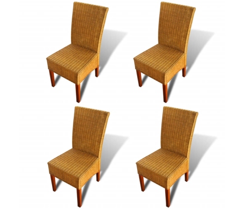 Dabīgās rotangpalmas materiāla sēdvirsmas ir ļoti ērtas. Ja jūs meklējat mēbeles, kas dekoratīvi papildinās esošo virtuves vai ēdamistabas interjeru, šie pievilcīgie pītie krēsli noteikti būs labākā izvēle. Komplektā ir iekļauti 4 krēsli.