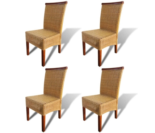 Dabīgās rotangpalmas materiāla sēdvirsmas ir ļoti ērtas. Ja jūs meklējat mēbeles, kas dekoratīvi papildinās esošo virtuves vai ēdamistabas interjeru, šie pievilcīgie pītie krēsli noteikti būs labākā izvēle. Komplektā ir iekļauti 4 krēsli.