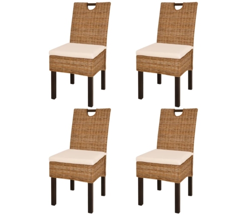 Mango koka rāmis un dabīgais rotangpalmas pinums piešķir šiem virtuves krēsliem ne tikai izturību, bet arī ļoti dekoratīvu izskatu. Rotangpalmas pinuma sēdvietas ir ļoti ērtas un viegli kopjamas. Biezie sēdvietas spilveni ir ļoti ērti un viegli mazgājami, jo tiem ir noņemami pārvalki. Ja meklējat ko īpašu savam virtuves vai ēdamistabas iekārtojumam, šie pievilcīgie pītie virtuves krēsli noteikti būs īstā izvēle!