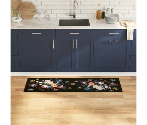 - Samta materiāls: Šis paklājs izgatavots no augstas kvalitātes samta, kas nodrošina greznu sajūtu zem kājām. Tas ir mīksts un ērts, ideāli piemērots garām gatavošanas vai tīrīšanas stundām, pievienojot eleganci jebkurai virtuvei.