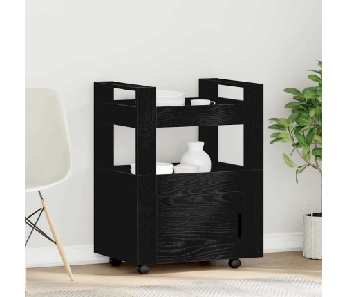Šie kompaktie virtuves rati eleganta melnā ozola apdarē apvieno funkcionalitāti ar stilu, padarot tos par lielisku papildinājumu jebkurai virtuvei.