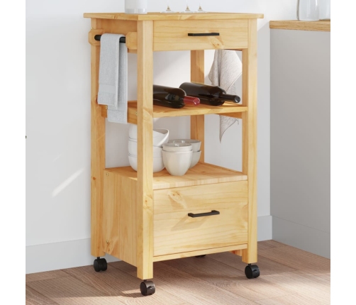 - Izturīgs materiāls: priedes masīvkoks ir skaists un dabisks materiāls. Priedes koksnei ir taisnu līniju tekstūra ar mezgliņiem, kas piešķir materiālam īpašu raksturu un dabisku izskatu. Šie priedes masīvkoka virtuves ratiņi ir stabili un izturīgi.
