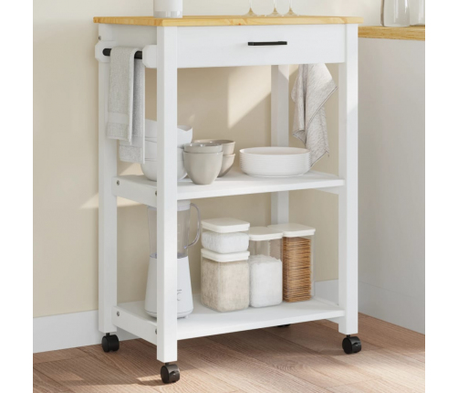 - Izturīgs materiāls: priedes masīvkoks ir skaists un dabisks materiāls. Priedes koksnei ir taisnu līniju tekstūra ar mezgliņiem, kas piešķir materiālam īpašu raksturu un dabisku izskatu. Šie priedes masīvkoka virtuves ratiņi ir stabili un izturīgi.