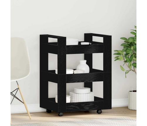 Šis virtuves ratiņš piešķir modernu un praktisku risinājumu jūsu gatavošanas telpai. Izgatavots no inženierijas koka ar matētu melna ozola apdari, tas kalpo gan kā moderna mēbele, gan kā funkcionalitātes palīgs ēdiena gatavošanā un pasniegšanā.