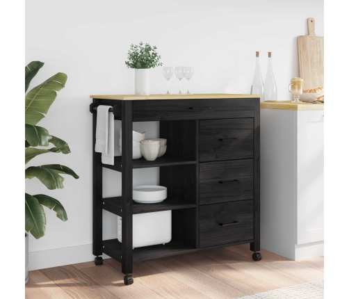 Šis mūsdienīgais virtuves ratiņš ir super praktisks un stilīgs. Ar eleganto formu tas forši iekļaujas ikvienā virtuves interjerā. Taisnstūra forma un gluda tekstūra papildina melno un brūno krāsu paleti, piešķirot jūsu virtuvei jaunu enerģiju, kā arī praktiskas uzglabāšanas iespējas. Mobilie riteņi un viegli pieejamās atvilktnes padara ratiņu ideālu ikvienam, kas mīl gatavot un izklaidēt.