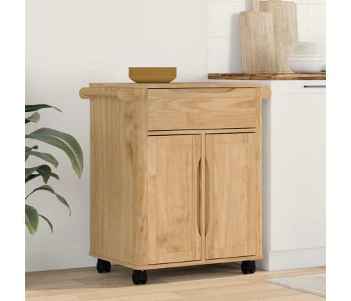 - Augstas kvalitātes konstrukcija: Šis ratiņš ir izgatavots no masīvkoka un ir domāts, lai izturētu ikdienas virtuves lietošanu. Priežu koks piedāvā siltus grauda toņus, kas piešķir virtuvei mājīgu sajūtu. Šis materiāls ir stabils un izturīgs, nodrošinot ilgmūžību un izturību pat intensīvas lietošanas apstākļos. Apvienojot estētiku ar funkcionalitāti, šis ratiņš uzlabo tavu virtuves atmosfēru.