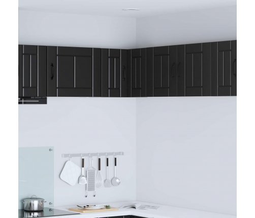 - Durvis ar eņģēm: Modernas durvis ar eņģēm nodrošina gludu funkcionalitāti un stilīgu izskatu. Melnie stieņi piešķir pievilcīgu kontrastu, kas papildina mūsdienīgu virtuvi.