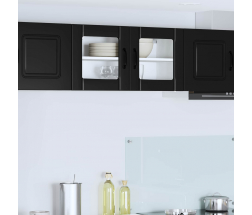 - Durvis ar eņģēm: Modernas durvis ar eņģēm nodrošina gludu funkcionalitāti un stilīgu izskatu. Melnie stieņi piešķir pievilcīgu kontrastu, kas papildina mūsdienīgu virtuvi.
