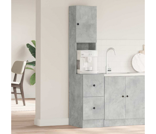 Šis virtuves skapis ir stilīgas un funkcionālas kombinācijas piemērs, kas nodrošina efektīvu uzglabāšanu un uzlabo tavas virtuves skatu. Izgatavots no izturīgas inženiertehniskās koksnes ar betona pelēku apdari, tas piešķir mūsdienīgu atmosfēru un padara telpu lietošanai ērtu.