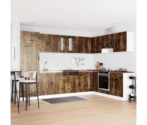 Šis kūpinātu ozolu virtuves izlietnes skapis apvieno stilu un praktiskumu. Izgatavots no izturīga inženierijas koka un ar jauku kūpinātu ozolu, tas labi iederas dažādos virtuves stilos. Ar daudz uzglabāšanas vietas un stilīgu izskatu, tas ir gan noderīgs, gan pievilcīgs.