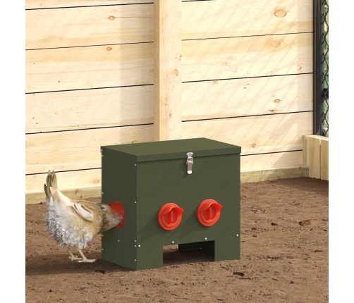 - Iekļautās funkcijas: Liela iekšpuse nodrošina, ka barotava var saturēt pietiekami daudz vistas barības, viegli uzpildāma un aizsargāta no laikapstākļiem.