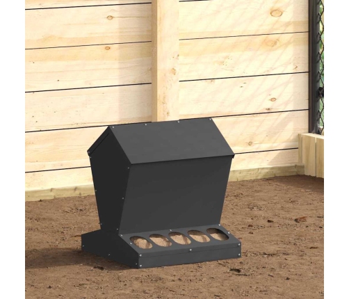 - Izturīga tērauda konstrukcija Šis barotājs ir no izturīga tērauda, tāpēc tas labi iztur skarbus laika apstākļus un ir piemērots intensīvai lietošanai. Tas nodrošina ilgstošu risinājumu jūsu vistu barošanai, dodot mieru, ka jūsu putni ir labi paēduši.