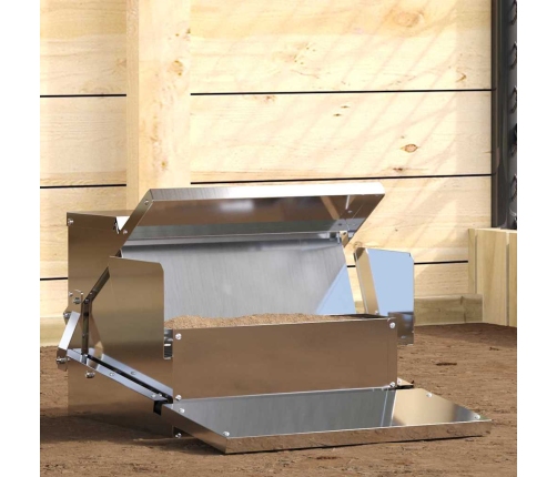 - Materiāli: Piegādātājs izgatavots no izturīga tērauda, kas ir izturīgs pret laika apstākļiem un biežu lietošanu. Tas ir ideāls, lai barotu vistas, kas ir pakļautas mainīgiem laikapstākļiem.