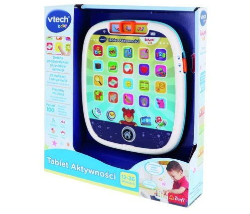 Miś Zdziś ze znanej, polskiej bajki Bobaski i Miś, zachęca do wspólnej zabawy, dzięki Tabletowi Aktywności od Vtech. Poznawaj cyfry, kształty oraz nazwy zwierząt, dzięki 25 kolorowym przyciskom-aplikacjom. Baw się i licz wspólnie z przyjaznym Misiem, a także wspólnie zaśpiewajcie wesołe piosenki! Dla dzieci w wieku od 12 do 36 miesięcy.