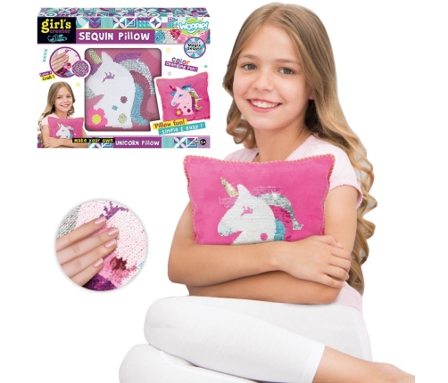 Poduszka do Ozdobienia Jednorożec od marki WOOPIE z serii ART&FUN wprowadzi dziecko w świat mody! Zestaw kreatywny dla każdego. Zestaw zawiera: poszewkę, poduszkę, cekiny, igłę i nic. Samo szycie poduszki jest proste, każdy sobie z tym poradzi - wystarczy odrobinę wyobraźni i kreatywności! Gotowa poduszka ciekawą właściwość: gdy się potrze zmienia kolor. Zestaw rozwija pierwsze zainteresowania jakim jest szycie i moda, cierpliwość, a przede wszystkim zdolności manualne!