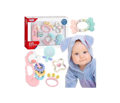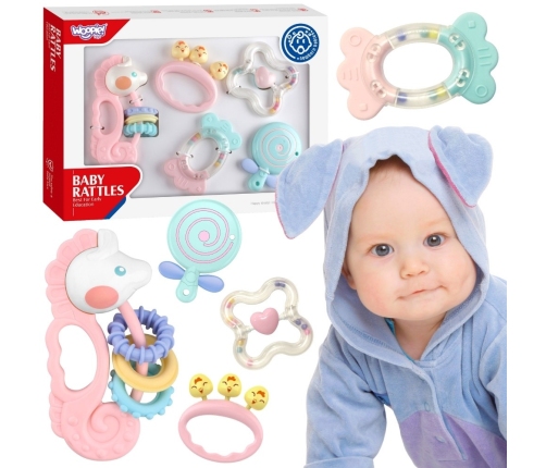 WOOPIE grauzēju un rattles komplekts bērniem sastāv no 5 dažādām, krāsainām detaļām, kas izstrādātas, lai palīdzētu bērnam zīdaiņu zobu iznākšanas procesā. Grauzēji ne tikai sniedz atvieglojumu iekaisušām smaganām, bet arī stimulē redzes un dzirdes attīstību. Papildus izliektajam un izceltajam formai, kā arī dažādajām tekstūrām, šie grauzēji veicina taustes sajūtas attīstību.
