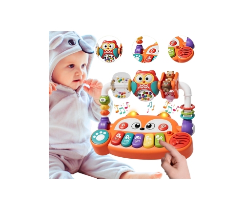 Szukasz zabawki, która nie tylko zajmie malucha na dłużej, ale również będzie wspierać jego rozwój już od pierwszych miesięcy życia? Interaktywne pianinko edukacyjne od marki Woopie łączy w sobie muzykę, światło, kolor i ruch stając się idealnym kompanem do codziennej zabawy, nauki i eksplorowania świata! Wyróżnia je przemyślana konstrukcja — zabawka została zaprojektowana w formie wesołego liska z dużymi oczami i uroczym pyszczkiem, które przyciąga uwagę dziecka. Kolorowe klawisze z nutkami wspierają wczesną edukację muzyczną, a efekty świetlne LED zsynchronizowane z dźwiękiem sprawiają, że zabawa staje się prawdziwym koncertem zmysłów!Dodatkowe elementy takie jak obracająca się sowa z grzechotkami, obracane figurki zwierzątek i kolorowe pierścienie zapewniają różnorodność bodźców i inspirują do aktywności fizycznej. Zabawka umożliwia samodzielne przełączanie trybów, co daje dziecku poczucie kontroli i motywuje do dalszego odkrywania. To idealny wybór na prezent dla niemowlaka, który wspiera rozwój sensoryczny, muzyczny i poznawczy w bezpieczny i przyjazny sposób. Zabawka została wykonana z nietoksycznych, wytrzymałych materiałów, a wszystkie krawędzie są zaokrąglone i gładkie — idealne do małych rączek. Niech Twój maluch już od najmłodszych lat odkrywa świat dźwięków, rytmu i koloru — wszystko to w jednej, magicznej zabawce edukacyjnej!