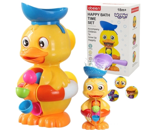 Zabawka wodna Kaczuszka od marki WOOPIE zapewni długie godziny zabawy podczas kąpieli i nie tylko. Dziecko za pomocą łopatki wlewa do czapki kaczuszki wodę. Podczas wlewania wody oczy kaczuszki będą kręcić się w kółko, buzia otworzy się i wleje wodę do kołowrotka umieszczonego na brzuchu. Dodatkowo, z tyłu zabawki są 2 przyssawki, dzięki czemu można przyczepić ją do ściany w łazience lub do wanny. Zabawka nie tylko umili czas podczas kąpieli, ale również rozwinie wyobraźnię, zdolności manualne u dziecka oraz rozwinie świadomość otaczającego go świata, a przede wszystkim pozwoli dziecku skupić się i zająć czymś podczas mycia.