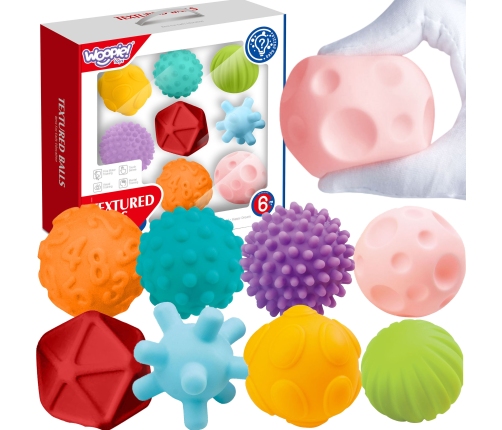 WOOPIE Klocki Sensoryczne zaciekawią każdego malucha. Dzięki ciekawym kształtom, kolorom i możliwości wydawania dźwięku przez ściśnięcie doskonale stymulują rozwój koordynacji wzrokowo-słuchowej, motorycznej dziecka oraz zmysłu dotyku. Klocki posiadają wypukłe kształty z różnymi teksturami/wzorami oraz kształtami. Klocki są miękkie i przyjemne w dotyku. Dzięki swojej budowie sprawdzą się również doskonale jako gryzak. Produkt w pięknej stonowanej kolorystyce przeznaczony dla dzieci od 6 miesiąca życia.